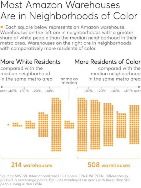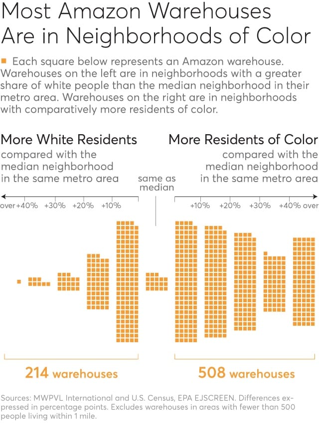Add: Companies like Amazon have opened up the vast majority of last-mile logistics facilities in communities of color that have long suffered disparate environmental harms like increased rates of air pollution, noise, and asthma